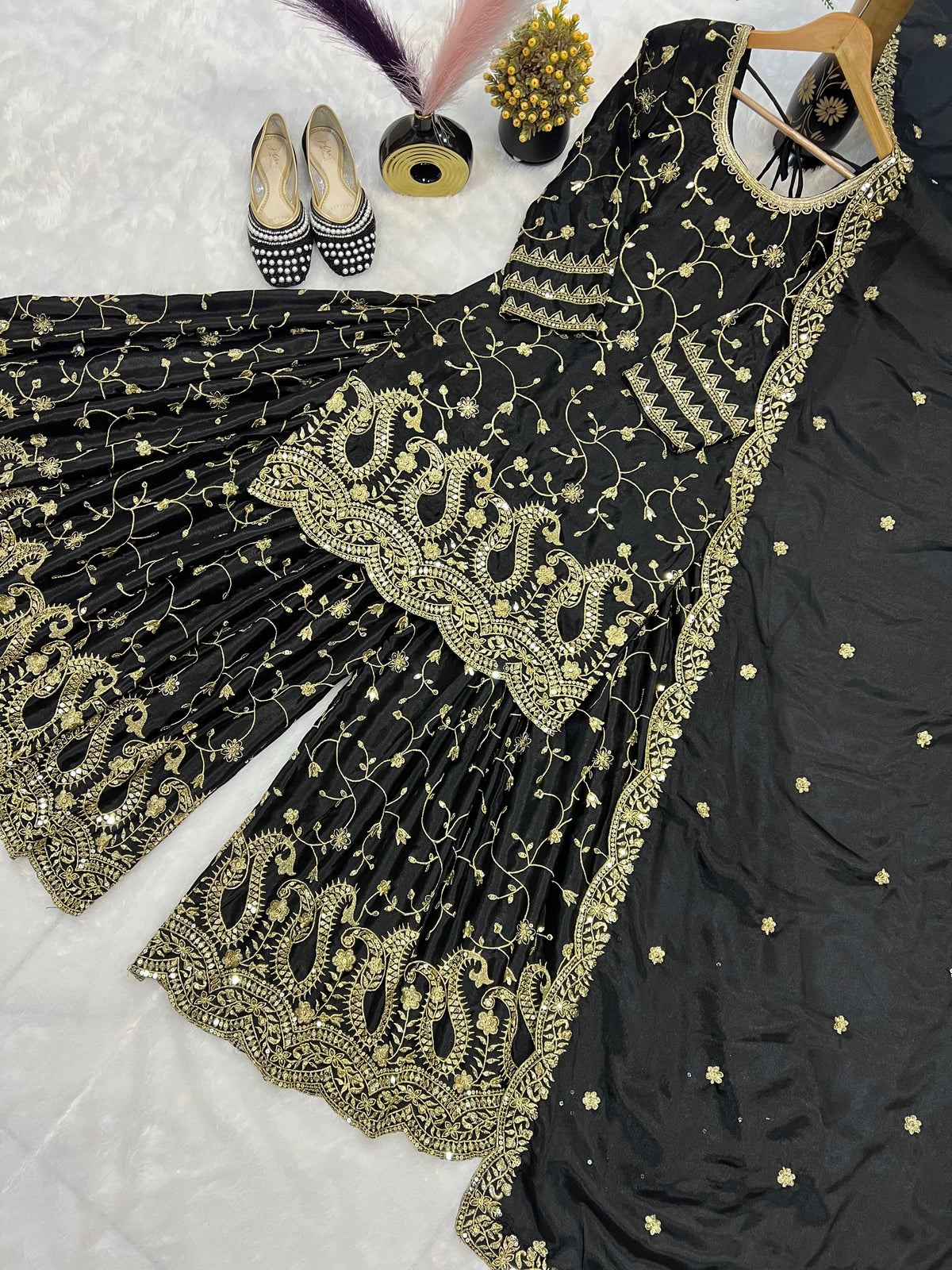 💃*Plazzo fabric* :Pure Heavy Chinnon Silk With Heavy Embroidery Sequence Work *(FullyStitched)*